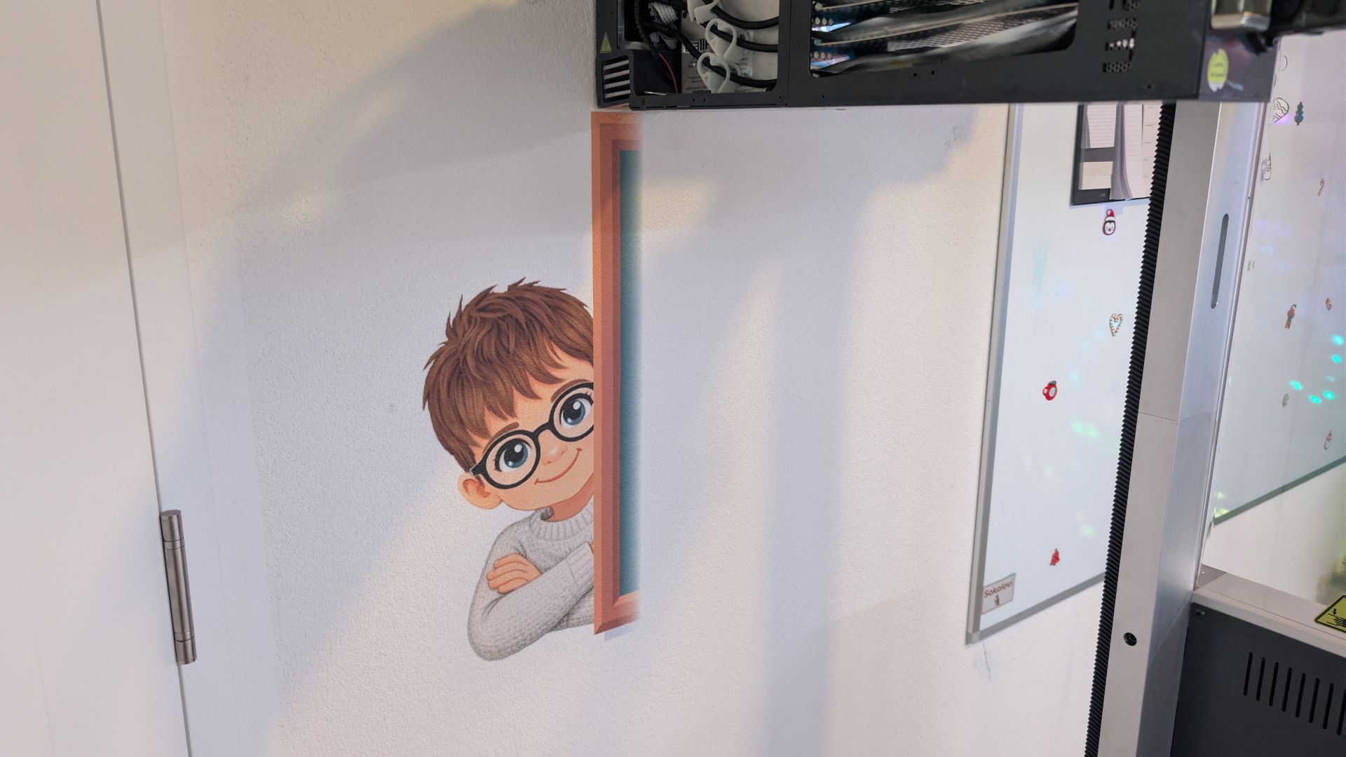 Réalisation d’une décoration murale personnalisée pour une chambre d’enfant, inspirée de l’univers de l’école et de la salle de classe.